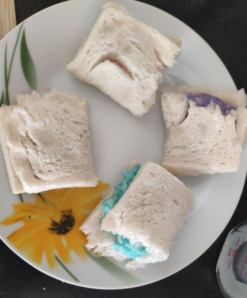 Coupez les deux tranches en deux, puis rajouter la préparation à l’intérieur.